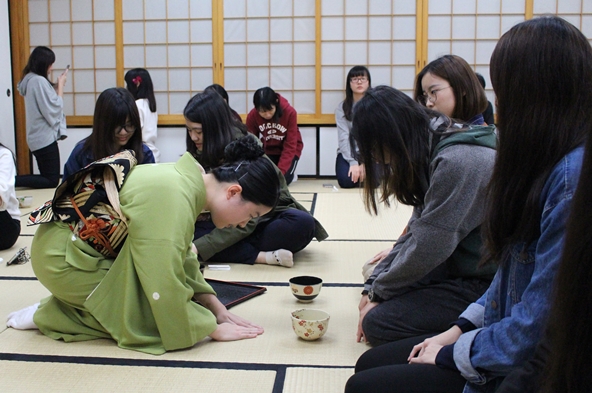 日本茶道是日本傳統藝道,茶道不僅是喝味道、品香氣,還要能夠感受茶道中的精神。107年1月3日由茶道社在R1001所舉辦的成果發表會,茶道社社員親自說明與示範完整茶會流程,讓與會的同學能瞭解且體驗日本茶道文化。