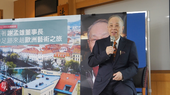 本校群育暨美育中心邀請本校謝東閔人文社會講座教授謝孟雄先生於106年12月5日來到城中校區,向校內師長同學分享以歐洲藝術延伸至人生的豐富經歷。謝孟雄講座教授目前擔任董氏基金會董事長、實踐大學董事長,也曾擔任第二屆監察委員、台北醫學大學校長,並為中華藝術攝影家學會榮譽會員。謝孟雄講座教授從醫學學校畢業,除了擁有醫術專業之外,他也熱愛藝術、攝影以及旅遊,對史地、音樂也如數家珍,活出豐富精采的人生。