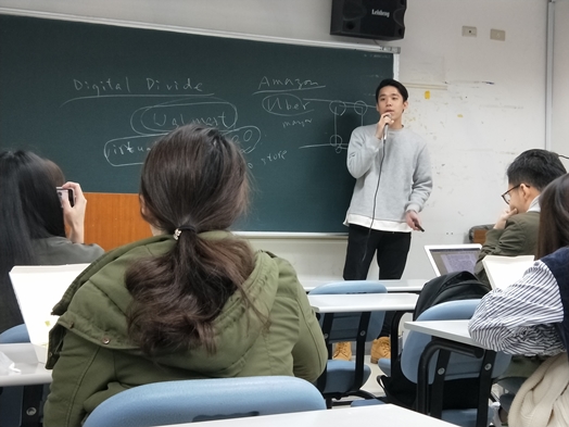 在中國政法大學交換的法律系學生陳顥同學,與同學們述說他在北京的精采生活,從學校簡介、食、衣、住、行等面向一一介紹。像是北京有來自各地的食物,但口味上偏鹹、辣,綠色蔬菜也比較少。而在分享學校生活外,也跟所有人介紹他利用空閒時間所去參觀的景點,利用半年時間他去了西安、哈爾濱、山東濟南等地方,精彩的分享讓同學認識這些景點與各地特色。