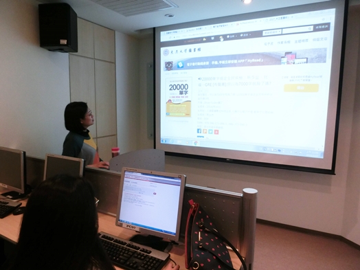 為了提升閱讀品質與多元需求,本校圖書館網站提供眾多電子書籍、雜誌和語言學習資料庫等線上資源,讓讀者不需親自跑一趟圖書館,也可以享受閱讀的樂趣。張老師以天下雜誌知識庫、哈佛商業評論全球繁體中文版、電子雜誌行動圖書館以及中西文電子書做為介紹,讀者們經由網站就可以享受閱讀的樂趣,且校內的電子資源包羅萬象,提供多方面的資訊。