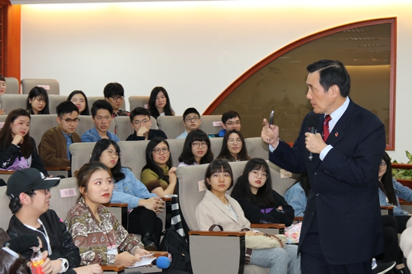 最後,馬教授特別談到台菲漁業糾紛,在其總統任內秉持「態度理性、立場堅定、措施強硬」,終使雙邊簽署台菲執法協定;另外,在菲律賓遭逢風災時,也提供人道援助,大大改善與菲律賓的關係。馬教授研究海洋法已40年,他提及其實很多事情在當學生的時候就有思考,從馬同學到馬總統的轉變,正好有機會將以前做不到的事情在總統任內完成。