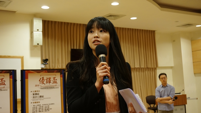 對於各校菁英同場較勁,選手們紛紛表示,這樣的賽制非常新鮮、有創意,現場也有許多英文系同學跟師長來觀賽,增加了比賽的緊張感,台下每一雙眼都專注地盯著台上參賽者的表現,壓力非常大,但也能挑戰個人翻譯力的極限,是相當難得的機會。經過一整天的激烈角逐,由國內中英文翻譯領域最強專家組成的評審團也評選出前五名優秀選手名單如下: