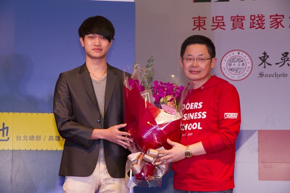 東吳實踐家創創基地提供東吳學子有更多實作機會,因此學生會會長詹仲昕同學也特別代表學生獻花予林偉賢董事長,感謝學長大力推展創新創業的智慧與經驗。期許未來每位在東吳實踐家創創基地學習者,都能成為一個「有創意、能創新、敢創業」的東吳人。
