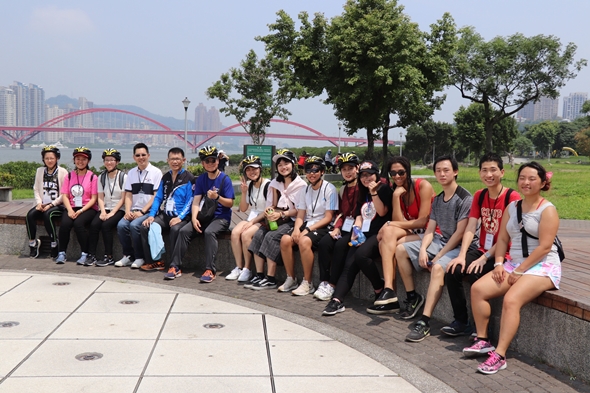 本學期「校長有約─水岸鐵馬樂春遊」活動於107年5月19日盛大舉行,共有來自法國、日本、韓國及大陸等110位的境外學生參加,另有來自西南大學的馬濤老師、西北政法大學的劉學文老師及福州師範大學的彭思彬老師共襄盛舉,活動熱鬧溫馨。