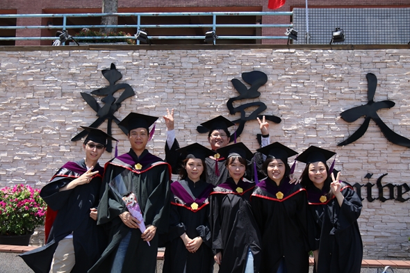 唱完校歌後,同學與師長、家人在校園內拍照留念,回憶在東吳這四年來的點點滴滴,也彼此擁抱互相道別,期許未來的人生道路上,大家有緣再相會。