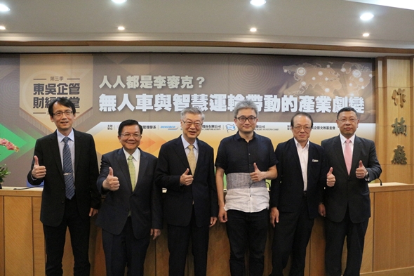 本校企業管理學系於2018年7月4日(週三)舉辦第三季「東吳企管財經講堂」,第五場次主題是《人人都是李麥克?無人車與智慧運輸帶動的產業劇變》,由法商講座教授陳冲擔任主持人,邀請工研院暨資策會董事長李世光、財團法人車輛研究測試中心總經理黃隆洲、微軟AI研發中心執行長張仁炯、台灣人工智慧實驗室創辦人杜奕瑾、企業管理學系林建州教授,共同探討無人車與智慧運輸對台灣產業的影響。