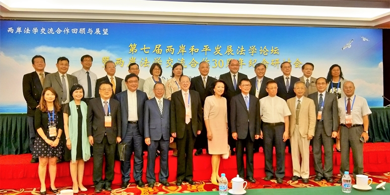 由本校與中國法學會共同主辦的第七屆兩岸和平發展法學論壇暨兩岸法學交流合作30週年紀念研討會於7月19及20日在北京舉行。開幕典禮由中國法學會陳冀平常務副會長主持,國台辦劉結一主任、中國法學會王樂泉會長、東吳大學潘維大校長、台灣法曹協會蘇永欽理事長於開幕式致辭。