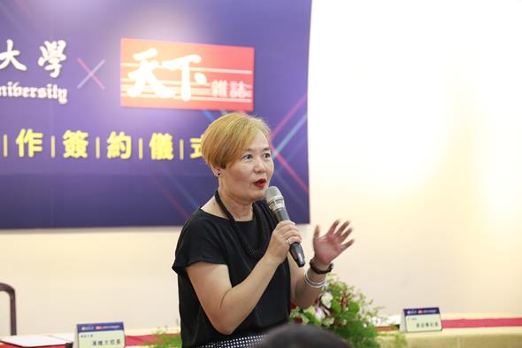 天下雜誌吳迎春社長表示,謝謝東吳提供天下雜誌這樣的機會,讓天下創新學院能跟台灣唯一把「大數據、人工智慧」跟「管理」結合的東吳巨資學院合作開e-learning課程。此系列課程,東吳巨資學院名師盡出,不僅有郭台銘最推薦的大數據暢銷作家,還有台灣數一數二的社群大數據專家等等,都是現在很夯的領域專家。此外,他們與來自企業界的在職學生有密切地互動,理解企業的需求,在課程中分享他們實務經驗與案例,相對於坊間純理論的課程更具優勢。