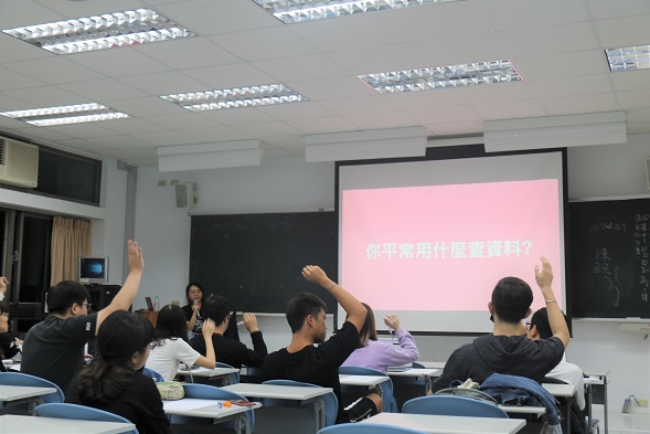 在Google搜尋欄中輸入關鍵字,不到一秒的時間五花八門的資料全部陳列在螢幕前,除了來自維基百科、痞客邦、Facebook的資料,你還有其他管道可以使用嗎?陳睨老師建議如果是以研究目的找資料,可至國家圖書館、台灣人文及社會科學引文索引資料庫,或者利用學校的帳號進入華藝線上圖書館蒐集論文。另一方面,她大方地向大家分享:資料優格、全國法規資料庫、政府資料開放平台等網站,皆可取得官方、正確又乾淨的數據及法規,歡迎同學多加利用。