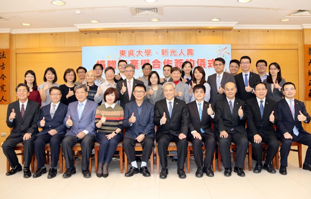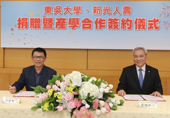 潘維大校長致詞時感謝新光人壽對學校的支持,東吳與新光集團的關係特別有緣,新光人壽吳東進董事長為本校董事會的董事,新光三越的吳東興董事長是本校外文系校友,而出席今日簽約的蔡雄繼總經理(財精系64級)則是財精系第4屆傑出系友,今日雙方能締約合作,殊值慶賀。財精系多年來培育無數任職於各產壽險公司的優秀校友,而新光人壽為國內知名壽險公司,本校獲得新光人壽大力支持,深感榮幸。