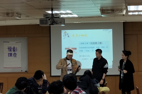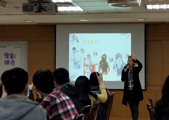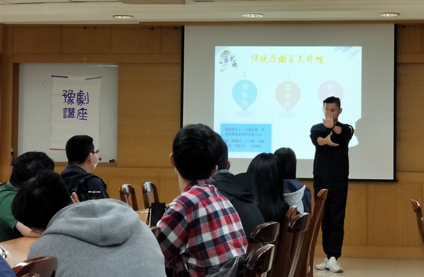 在講座中,二位老師也現場演唱豫劇片段,並指導同學做一些簡單的比劃動作,讓現場的同學也能透過肢體及唱詞,瞭解豫劇的美好之處。