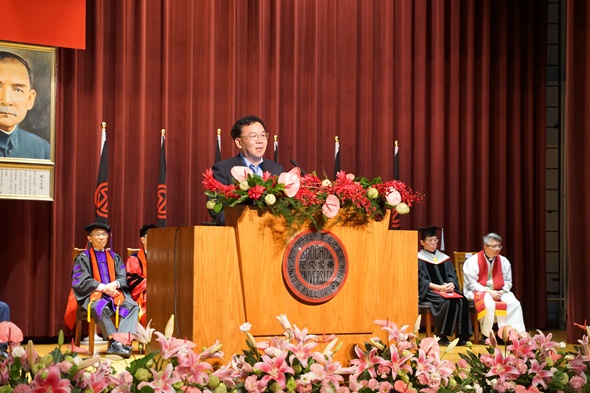 鳳凰花開,驪歌初唱,畢業生滿懷對師長及父母的感激之情,即將帶著驕傲及些許忐忑的心離開學校。前方也許未必是光明坦途,但回首在東吳大學的歲月,這些回憶會是支持畢業生們走下去的能量;發揮所學並關懷社會,發揚校訓精神,讓「東吳人」這個稱呼伴隨著畢業生前往下一個人生階段。
