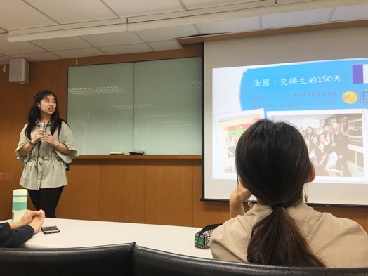 張謦芝學姐對事前簽證的辦理、出國前的準備工作,以及她在里爾的生活內容都做了詳盡的介紹。「我在短短半小時之內,花了將近新臺幣一萬元。」張謦芝學姐笑著分享當初申請赴法簽證時,光是價格就令她此生難忘;張學姐也對想在歐洲旅行的學弟妹們一些建議,她提醒可善用各種App,旅行前勤做功課,確實掌握交通資訊,就可以獲得很多的優惠資訊。