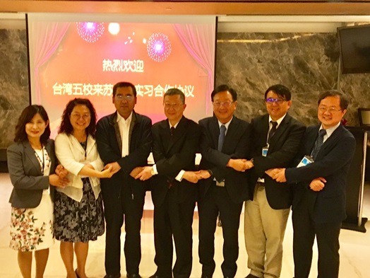 為拓展實習職缺,開闢境外實習,本校趙維良副校長於5月15日率同優久大學聯盟夥伴學校實踐、靜宜、中原與銘傳大學,共同赴蘇州,與蘇州市台灣同胞投資企業協會簽訂實習合約,未來蘇州市台資企業將釋出實習職缺予簽約學校,讓各校學生自2020年開始,有機會前往蘇州進行5至6個月的全學期實習。