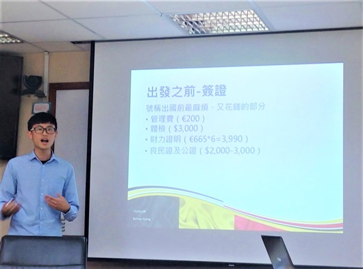 陳孝端分享的不只是身處國外的學習經驗,更是生活態度的啟發,此活動藉由邀請「過來人」分享經驗談的方式,鼓勵有興趣前往國外增加見聞的學生,能走出舒適圈,體驗不一樣的生活。