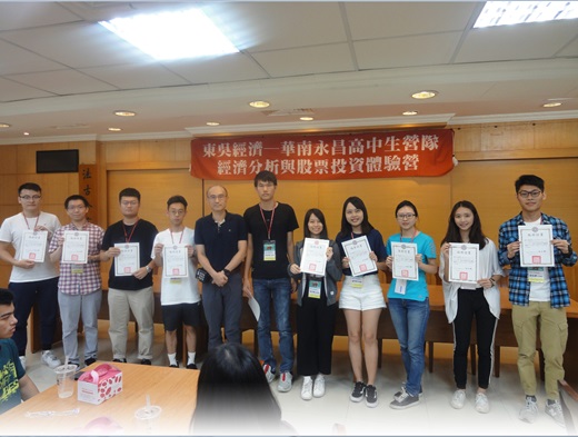 本校經濟系於108年7月3日至7月5日,首度舉辦「2019東吳經濟–華南永昌高中生營隊『經濟分析與股票投資體驗營』,反應熱烈,有69位高中生參加本次營隊。活動前2天在外雙溪校區進行,第3天活動至城中校區進行並舉辦結業式。學生對此活動整體滿意度接近9成,顯示此營隊能引起高中生興趣;此外,也有8成學生願意推薦此營隊給親朋好友,也為下次營隊活動帶來極大的激勵與動力。