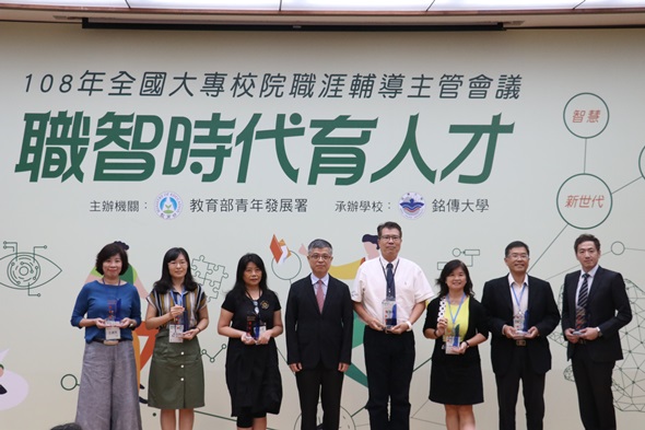 教育部於8月27日全國大專校院職涯輔導主管會議中,表揚全國職涯輔導工作表現優異的績優學校及職涯輔導人員,本校除榮獲績優職輔學校銅等獎外,生涯發展中心王俊雯主任也在各大學優秀職輔人員競爭中脫穎而出,得到傑出職輔人員銅等獎的肯定。
