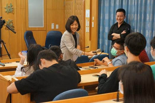 演講進行到尾聲,學姐建議大學生在求學生涯中去參加一場政治活動。她認為,在政治活動中,不僅能遇到與自己理念相符的人,也能嘗試了解另一方的思路,藉此鼓勵大學生們學習換位思考。
