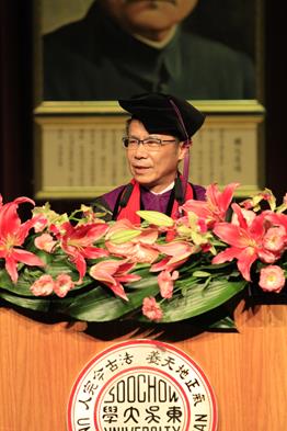 潘維大校長勉勵畢業生,凡事要心存敬畏、謙卑的學習及擁有感恩的心才能走得遠、走得穩,因為疫情讓我們感受人事變化無常,而任何事情都不會是理所當然如自己所想像的發展,因此要特別珍惜當下所擁有的。王紹堉董事長代表董事會祝福全體師生及畢業生健康平安,校友總會劉吉人理事長則表示,工作儘管忙碌,但每年迎接新生和畢業典禮,都成為他行事曆上的重要事項,今年畢業典禮雖然受到疫情影響,但通訊科技仍使我們能進行緊密溝通聯繫,而今日畢業不是道別,而是開展人生中另一個挑戰的開始,校友總會歡迎大家加入東吳校友大家庭。
