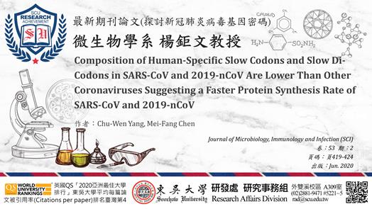微生物學系楊鉅文教授發表新冠肺炎病毒基因密碼相關之最新期刊論文