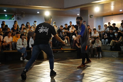 109年5月27日是一個特別的星期三傍晚,望星廣場人聲鼎沸,人潮漸漸聚集,場外加油聲及熱血的歡呼此起彼落,廣場中央幾個同學身影交錯,擺手、攻擊動作行雲流水,他們在場上的一舉一動都牽動著全場觀眾的心。此時裁判哨聲響起,贏家勝出,以王者之姿接受全場歡呼。