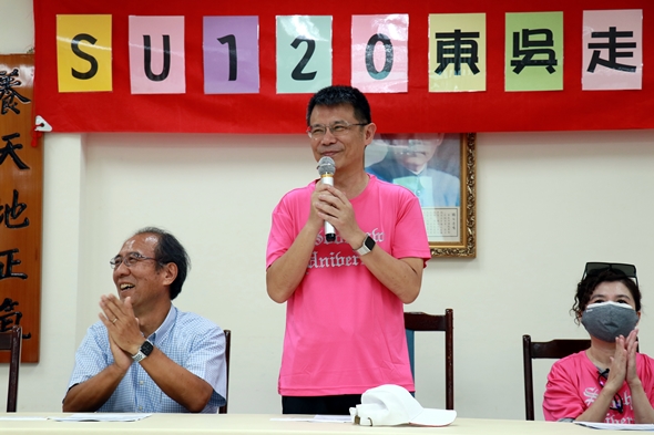 會後,全員移駕至操場,校長及各隊隊長們一同引領大家誓師起跑。學校參賽隊伍中,精心規劃的「SU120第1隊」是立志奪冠的金牌隊伍,高手雲集,成員除校長及光清董事長外,還有永遠不敗的東方介德主任、東吳籃球三分王戰將王志傑研發長、單攻玉山48小時不歇腳的吳吉政主任,個個都是強咖猛將,立志奪冠。活動將從9月1日至9月30日展開,教職員和海內外校友,大夥遍地開跑,24小時不停接力,最後冠軍是否能如願獎落SU120第1隊?請大家拭目以待,也歡迎各路好手一起來挑戰。