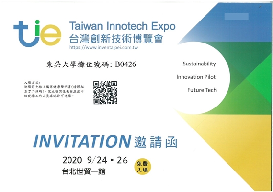 本校自102年開始,每年均以多項教師研發成果發明專利報名參與國際知名發明展覽及競賽,今年為推廣新近獲證之專利成果,在研究發展處規劃下,參展「2020台灣創新技術博覽會」之「學校發明競賽區」,設置「東吳大學研發成果」攤位(編號:B0426),將本校教師之研發成果展現於社會大眾面前,藉此創造應用價值,同時增進產學合作效益。