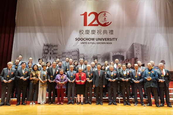 本校復校過程艱辛,從臺北市漢口街的三層樓房子起家,東吳補習學校就這樣誕生了,中間歷經教室、經費不足,校友們在發展的過程中,扮演了舉足輕重的角色。自1991年5月學校有系統紀錄起,至2020年7月止,來自各界的奉獻累計已達新台幣17億3,212萬6,903元。王紹堉董事長說:「未來絕對會全心全力、支持維護,母校的永續存在與發展。」潘維大校長則說:「東吳能有如此規模,由一磚一瓦累積至今,前輩們功不可沒!」120年校慶彌足珍貴,全靠校友、前人們耕耘而成,典禮上安排榮敬捐款人與團體,同時頒發資深教職員服務獎,受獎人皆是年資達40年以上的教職員工;現場更邀請了140多位的傑出校友出席,齊聚綻放東吳,與東吳結盟的全球姊妹校,也紛紛拍攝祝賀影片,祝福東吳大學生日快樂。