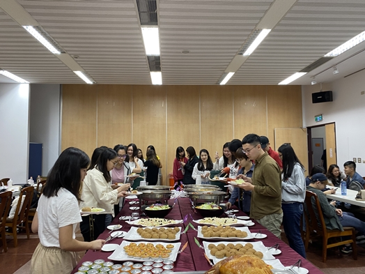 感恩節餐敘活動,本系準備了豐盛餐點,有道地的美式烤火雞、洋芋沙拉,蘋果派、雞翅與焗烤義大利麵等美式食物,讓師生品嚐傳統的感恩節餐點。活動還邀請孫克強教授說明感恩節的歷史意義,讓學生可以更加了解英美文化傳統中的重要慶典與由來。