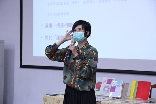 「畫畫你我他」創作工坊,特邀2018年法國安古蘭駐村漫畫家房瑞儀(Elaniee-藍尼)分享她的創作歷程與啟發,當天藍尼老師帶來許多自己收藏的作品,並帶領大家體驗創作樂趣。圖書館特於講座現場展出運動漫畫館藏與東吳大學漫畫學社運動主題創作。