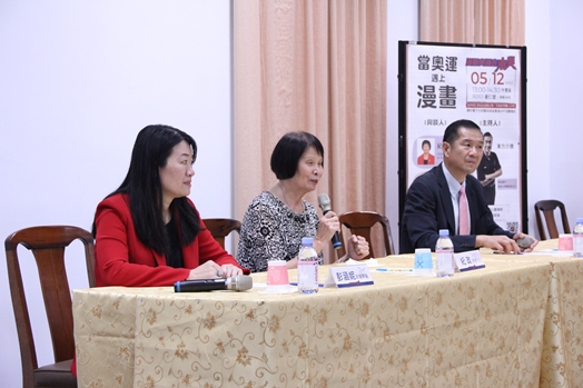 「當奧運遇上漫畫」名人講座由體育室東方介德主任主持,邀請「飛躍的羚羊」1968年墨西哥奧運會女子80公尺低欄銅牌得主紀政女士,與「體壇心靈導師」國立體育大學球類運動技術學系彭涵妮助理教授,一同分享運動的辛酸血淚與閱讀所帶來的激勵與啟發。
