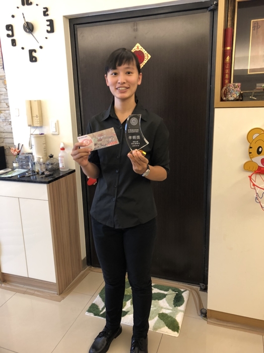 除了熱心公益值得嘉許外,她在珠心算領域更是出類拔萃,從4歲開始接觸珠心算,10歲當選國手,10多年來已是比賽的常勝軍。不只在國內拿下數十座獎盃,甚至代表臺灣到國外比賽亦屢獲佳績,其優異表現如:榮獲香港泛太平洋珠心算競賽冠軍;也代表臺灣至南韓參加泛太平洋珠心算競賽,榮獲第三名。認真鑽研於珠心算領域,讓她發揮長才獲得成就感。