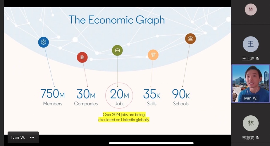 在揮別校園邁入職場前,未來的不確定性是否讓人感到徬徨與不安?本校學生學習資源組於110年10月20日在線上舉辦「LinkedIn主題式工作坊」,邀請LinkedIn北亞區公共事業部負責人Ivan,帶領同學們學習如何使用LinkedIn平台,幫助正在為未來感到迷惘的同學規劃與展現個人的職涯。