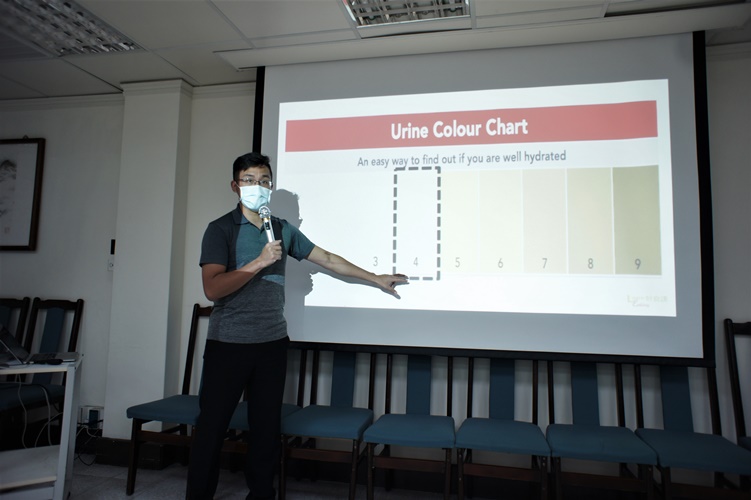 「空腹運動可以燃燒更多脂肪嗎?」答案為否定。楊老師建議同學們可於運動前1-2小時攝取2-3份全榖根莖類或水果類食物,並避免過多油脂與蛋白質的攝取。另外,在運動時多補充水分及糖類能幫助身體進入最佳運動狀態,進而達到較好的運動效果。