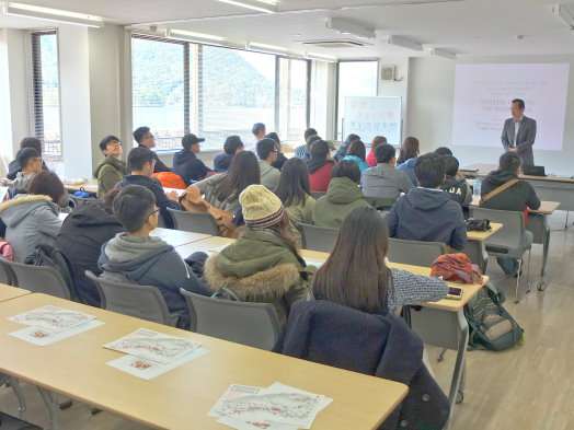 課堂學習以兩個主題進行,分別為廣田堅志教授擔任講座的「全球價值鏈發展對日、中、台經貿關係之意涵」與George Harada教授擔任講座的「Stepping Out into The Wider World」。廣田教授就中國經濟興起後,中、日、台三個經濟體分工的變化以統計數據做出精闢的分析。Harada教授則以全球化下青年學子如何走出舒適圈為題,鼓勵東吳的同學要勇於挑戰、自我實現。