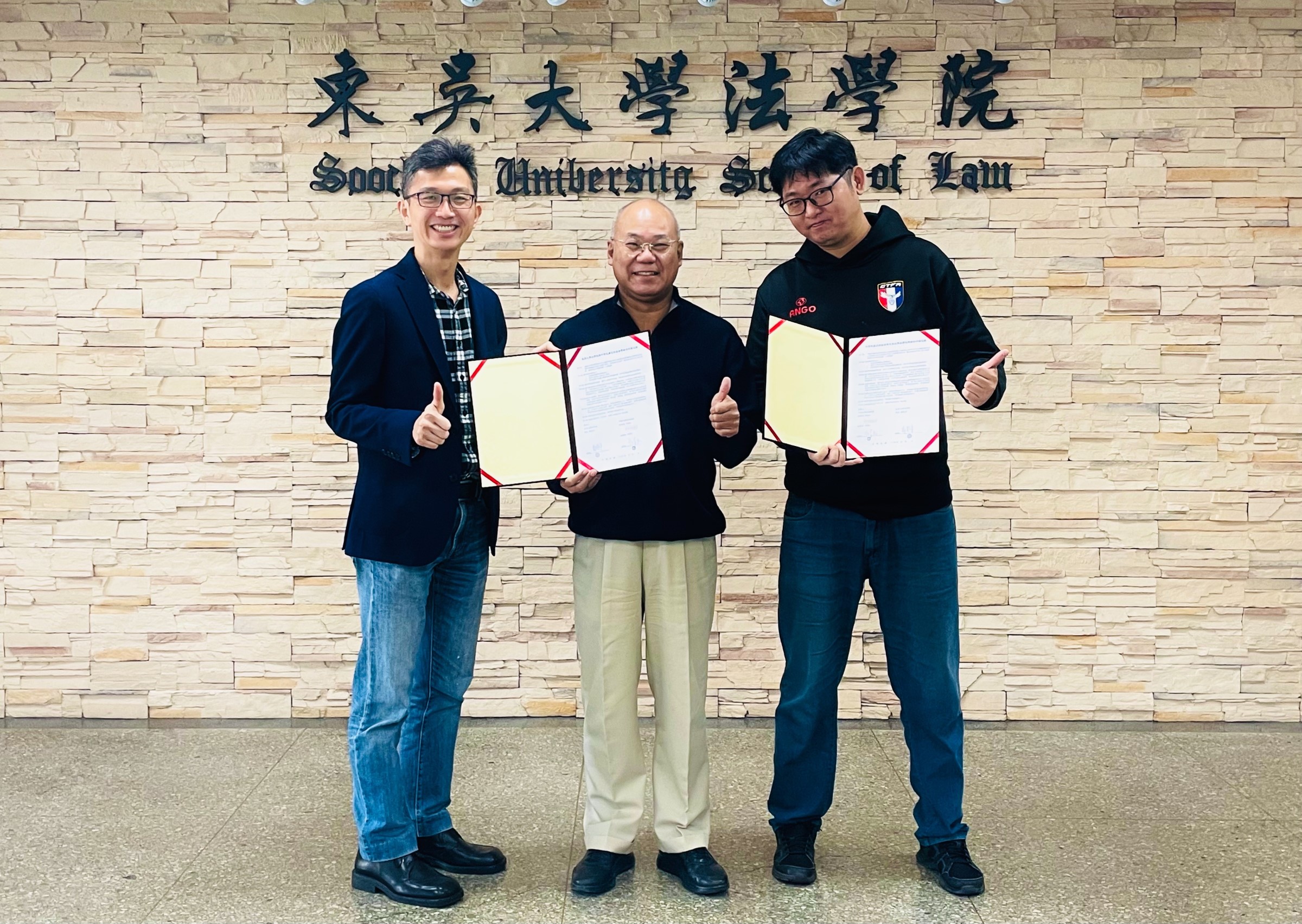 本次足協因看重東吳法學院跨領域發展運動暨娛樂法之特色,進行跨界合作,提供法學院學生實習機會,吸引年輕學子投入運動法律與制度的研究與發展。期盼能完善我國相關規定,建立健全制度,並因此促進運動產業的發展,進而使我國運動員參與國際賽事時,更能全心投入,百戰不撓!