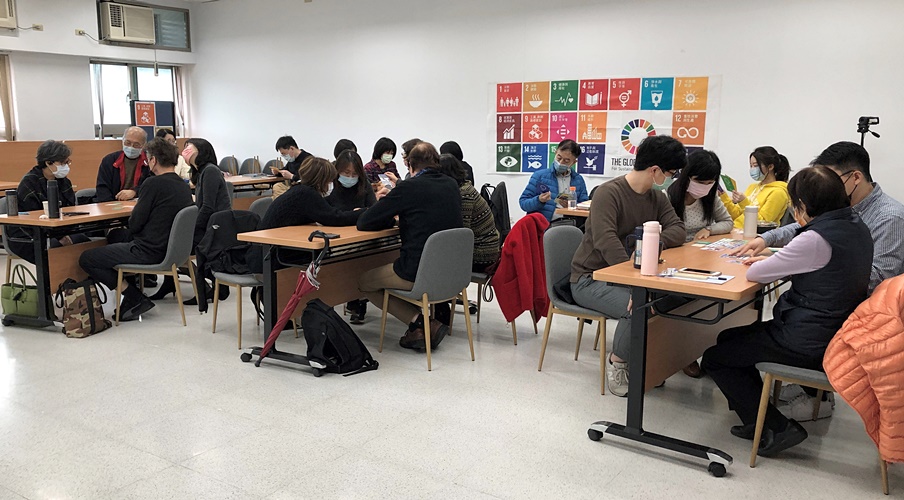 羅曉勤老師於活動一開始,先向大家介紹聯合國永續發展的17項目標(SDGs)意涵及SDGs桌遊的遊戲規則後,即以「讓我們共創2030年可能的東亞區域世界樣貌」為目標,在場的成員分組後,分別交付不同的人生目標和任務,並以手上相同的時間卡及金錢卡作為資源之用,玩家利用資源完成專案卡以獲得更多的時間卡、金錢卡或者原則卡,在目標導向下,讓成員更了解永續發展目標的內容。 最後,在大家共同努力下,各組善用自己的資源、策略來共創未來家園。