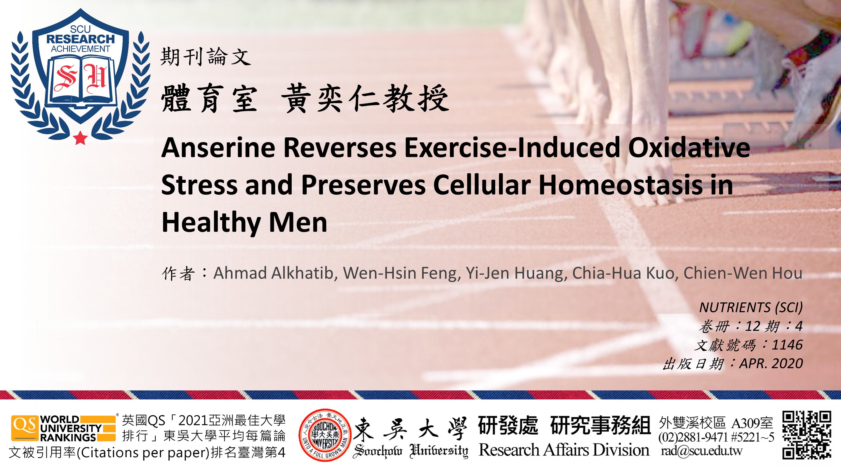 體育室黃奕仁教授發表期刊論文