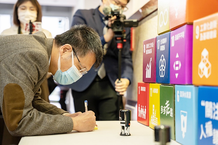 東吳大學與台灣創價學會於111年3月23日在外雙溪校區第二教學研究大樓1樓長廊,舉辦「SDGs X希望與行動的種子展」開幕式,藉由展覽使師生瞭解SDGs的目標,並進而於生活中實踐。本校與會師長為潘維大校長、董保城副校長和人文社會學院黃秀端院長、李坤璋學務長,台灣創價學會林釗理事長和林廷峰執行長亦到場參與。