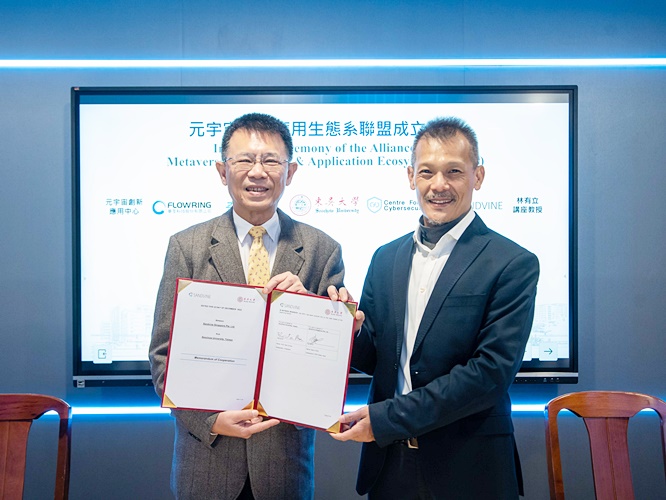 東吳大學元宇宙創新應用中心與奇林樂活、華苓科技、新加坡CFC-APAC、美國SANDVINE等企業與機構共同宣布成立「元宇宙創新應用生態系」,共同尋求元宇宙的多元、跨域整合發展。