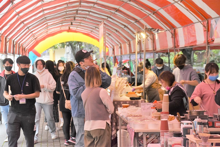 園遊會在胡凱傑系主任開場下拉開序幕,緊接著是一系列的表演,有千變萬化的魔術表演、嘆為觀止的雜耍、匠心獨運的氣球造型姐姐,還有巧奪天工的捏麵師傅,帶著大家一步步完成可愛的捏麵人。此外,美食也是不可或缺的,香噴噴的炒麵麵包、韓式料理、墨西哥捲餅等,令人垂涎欲滴;而手做可不只有捏麵人,還有龍鬚糖DIY,師傅帶著系友們將一塊石頭般的麥芽糖,拉成雲朵似、入口即化的龍鬚糖,再包上花生粉裝盒讓系友們帶回家,好吃好玩又新奇。