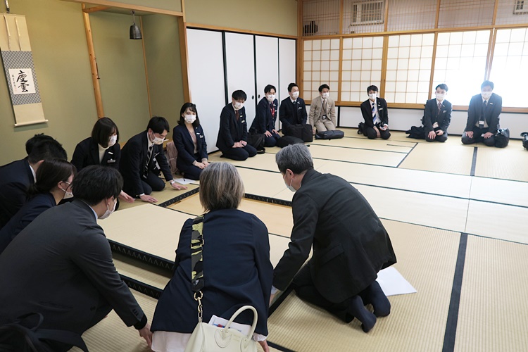 國際事務中心蘇克保主任親自接待日本貴賓,並以漫步校園的方式,詳細導覽外雙溪校園的各項設施,隨後並由外語學院王世和院長及日文系賴雲莊副主任介紹日本文化教室,說明本校學生如何透情境式教學學習日本文化。由於目前跨領域學士班有14位日本學生在校學習,研習團成員也特別至該班級見習,瞭解不熟諳華語的日本學生上課情形。