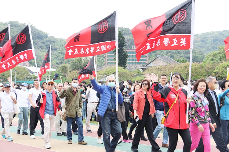各行政單位及學系於校慶運動會繞場時展現創意,學務處團隊穿著泰雅族傳統服飾,表演精彩的泰雅族歡樂歌,更別出心裁設計原住民族語的加油口號,充分表現本校重視多元文化推廣的決心,接著由總務處團隊手持「廚餘創生」、「淨零碳排」、「綠色採購」、「永續校園」四大特色標語閃亮出場,響應全球淨零碳排趨勢,強化師生永續環保認同。英文系同學俏皮扮演海綿寶寶、派大星大展青春活力;物理系同學生動模擬牛頓擺球運動,展現專業又創意的一面。穿著帥氣賽服,甫獲111學年度大專棒球聯賽冠軍的東吳棒球代表隊及東吳第3哩單車環島勇士,也以熱情表演感染全場,增添校慶光彩。王紹堉董事長、潘維大校長、校友總會陳惠貴理事長及來自全球各地的校友也一同祝賀母校生日快樂!