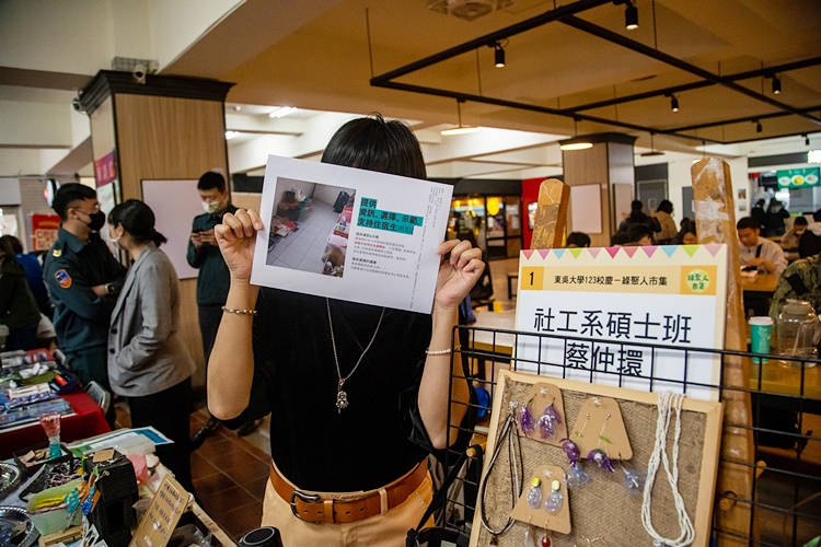 結合永續議題的「綠聚人」市集中,許多學生社團都推出使用環保餐具的折扣優惠,讓大家享用美食時仍能兼顧環保;更有社團推出永續桌遊及塔羅牌占卜,將牌卡結合聯合國永續發展目標(SDGs),讓大家在解讀內心想法時,也能思考如何在生活中實踐永續目標。「我販賣的小飾品是其次,重要的是背後欲傳達的理念!」社工系碩士班蔡仲環同學的小攤販完美詮釋此次「永續」議題。住在泉思學舍的她,發現同學們離宿後常留下大量家電、生活用品,她自發性收集並整理尚可使用的物品,並媒合相關二手市集,讓物品找到新主人。她表示,希望透過自身倡議行動,改變人們對於資源永續的觀念!