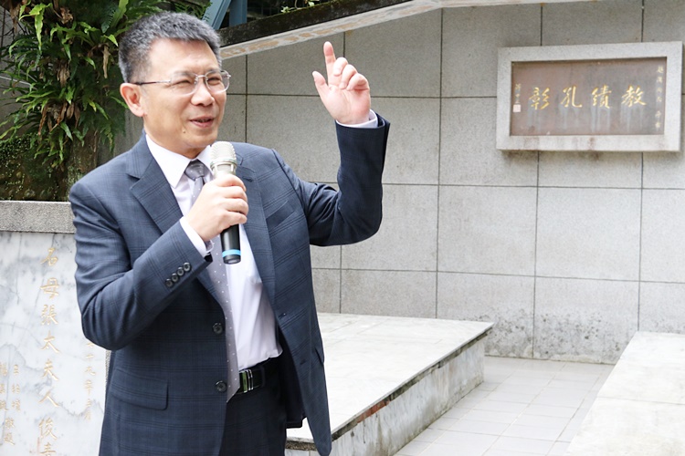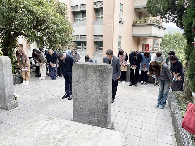 近代史上重要人物王寵惠故董事長,其墓園由其之子王大閎先生所設計,民國103年,台北市政府文化局訂為台北市市定古蹟。潘維大校長憶道,學生時期就常在這兒流連,既清幽又安靜。潘校長強調東吳大學能在台復校,感念王寵惠故董事長為最大的推手,以及石超庸故校長「鞠躬盡瘁」的精神,石故校長以校為家,一生誠信無私、耿直清廉,為實踐東吳校訓「養天地正氣,法古今完人」的典範,在臨終前一刻都還在為東吳大學致力,這無私奉獻的精神令人敬佩。此外,孫科先生是國父孫中山的嫡嗣,在本校復校的過程中擔任董事長,戮力盡心,這幾年經總務處聯繫遺憾得知故董事長伉儷墓園無相關單位維護,孫科故董事長親屬及後人多居海外,不克親自管理墓園,學校為回報故董事長對學校之奉獻與付出,特於今(112)年2月22日接受家屬-孫科董事長的孫子孫國升先生委託,協助本墓園平日之修繕與維護,以盡棉薄之力。最後,潘校長分享在學生時代聽過端木愷校長在升旗典禮中說過的「想一想」故事,故事寓意天下事未能盡如人意,切莫太過執著,多想一想也許就可開創出一個新的境界,深刻影響著潘校長做人處事的態度。