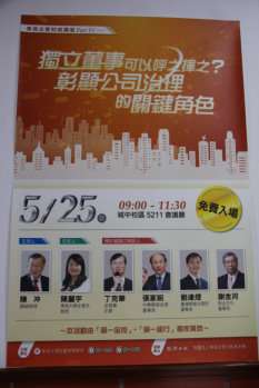 企業管理學系於2016年5月25日(週三)舉辦「東吳企管財經講堂」,第六場次主題是《獨立董事可以呼之揮之?彰顯公司治理的關鍵角色》,由本校法商講座教授陳冲擔任主持人,企管系陳麗宇教授擔任引言人,邀請金管會副主委桂先農、中華開發金控董事長張家祝、臺灣期貨交易所董事長劉連煜、財金文化董事長謝金河,共同探討獨立董事的功能與配套制度的建立。