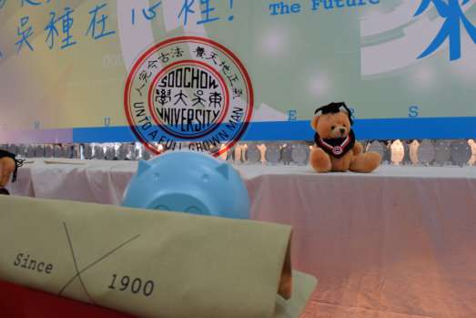 此外,兆赫電子董事長黃啟瑞(東吳大學會計系65級校友)所準備的4,000份禮物「APP電子小豬撲滿」,今年畢業生人人皆可擁有一隻,這是由旗下瘋狂賣客所開發的撲滿贈送給畢業生,獻上祝福!