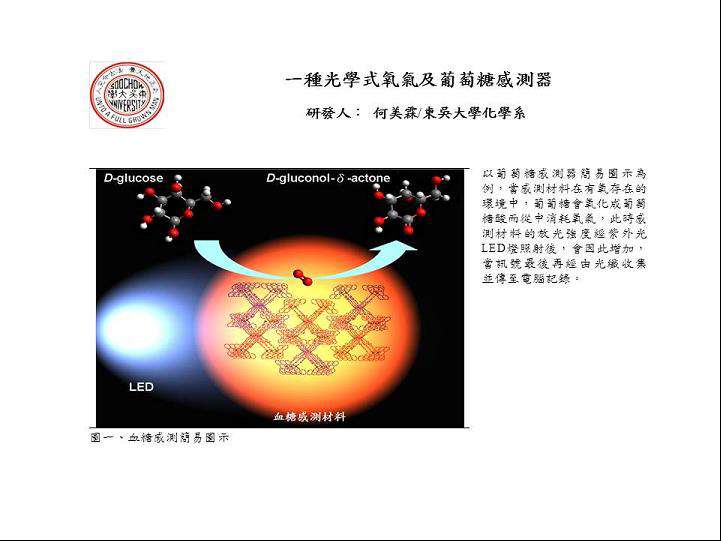 7.「一種光學式氧氣及葡萄糖偵測器的電化學合成法(發明人:化學系何美霖教授等人)(第 I 521099號)