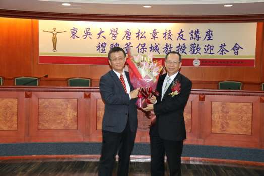 潘維大校長致詞時表示,首先感謝唐松章董事慷慨捐輸,成立唐松章校友講座,學校也很榮幸能禮聘董保城教授成為本講座第一位講座教授。潘校長描述董教授早期在東吳任教之風采,教學活潑,唱作俱佳,可將枯燥的行政法,讓臺下的學生聽得興趣盎然,深受同學歡迎;其後學而優則仕,服務考選部期間,排除萬難,改變律師考試方式,提高錄取率,振奮所有法律人;法學院洪家殷院長表示,董教授為人熱情,雖在仕途,但毫無官架子,提攜後進,所培育之弟子亦在杏壇開枝散葉,造福社會。