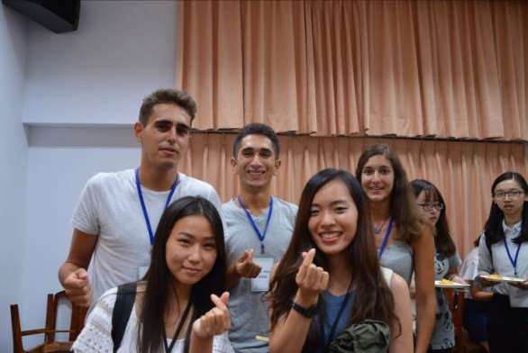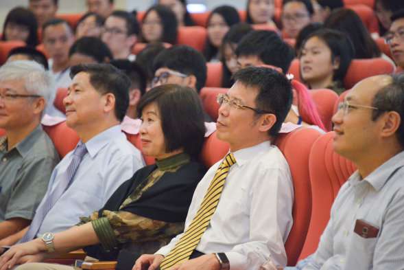 潘維大校長、詹乾隆教務長、阮金祥總務長、王淑芳主任秘書、人文社會學院黃秀端院長、外國語文學院林茂松院長、理學院宋宏紅院長、法學院林桓老師、商學院陳惠芳副院長、推廣部吳吉政副主任、微生物學系張怡塘主任、福州大學林逢春老師、上海商學院曹瑞老師及國際處兩岸事務中心王玉梅主任共十多位師長,共同迎接來自18個國家近350位的交換生,場面熱烈,氣氛溫馨。